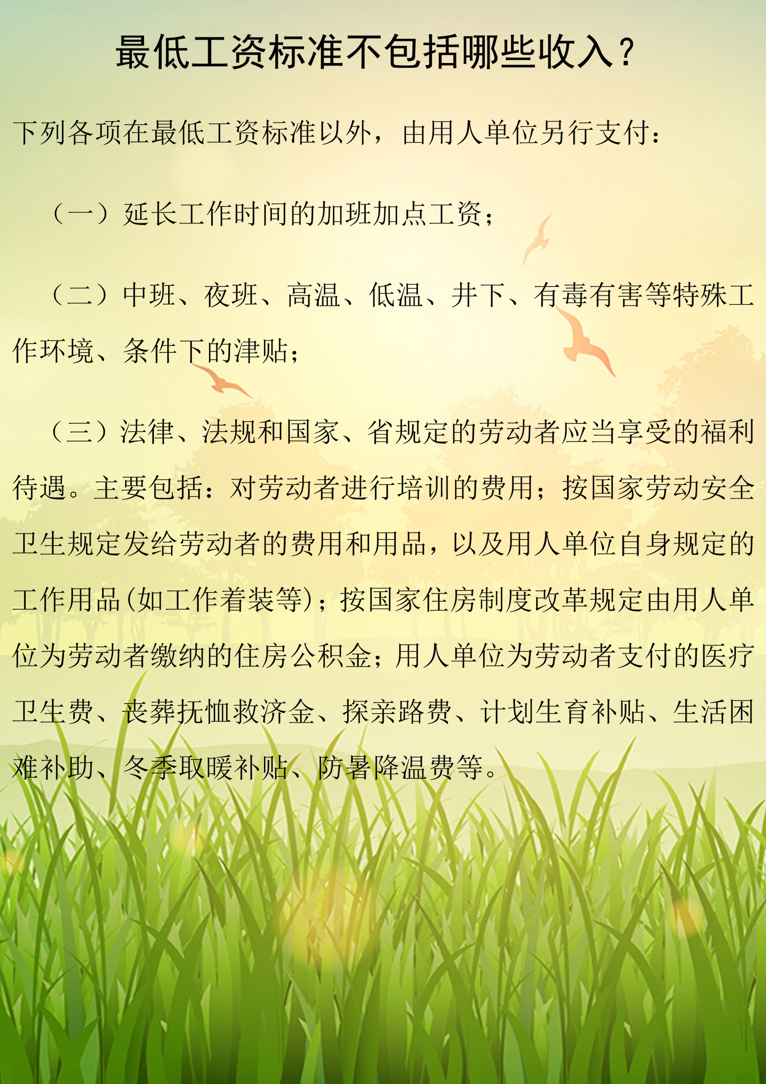 最低工资标准不包括那些收入